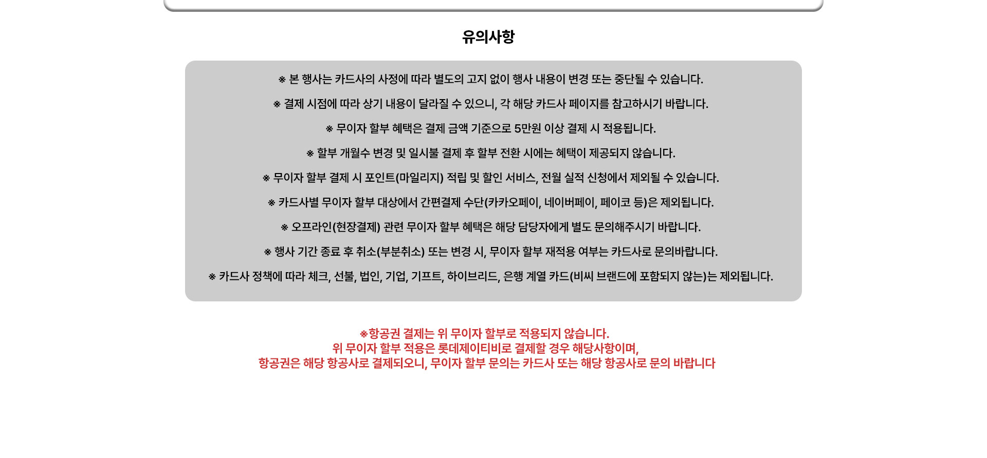 3. 발권 후 항공권 환불 시, 환불금액은 롯데제이티비 상품권으로 환불될 수 있습니다.